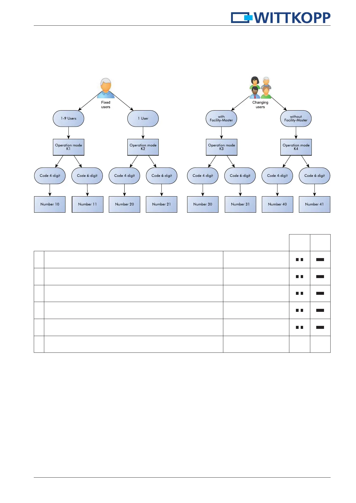 In case of changing the operation mode/number all user codes will be deleted.