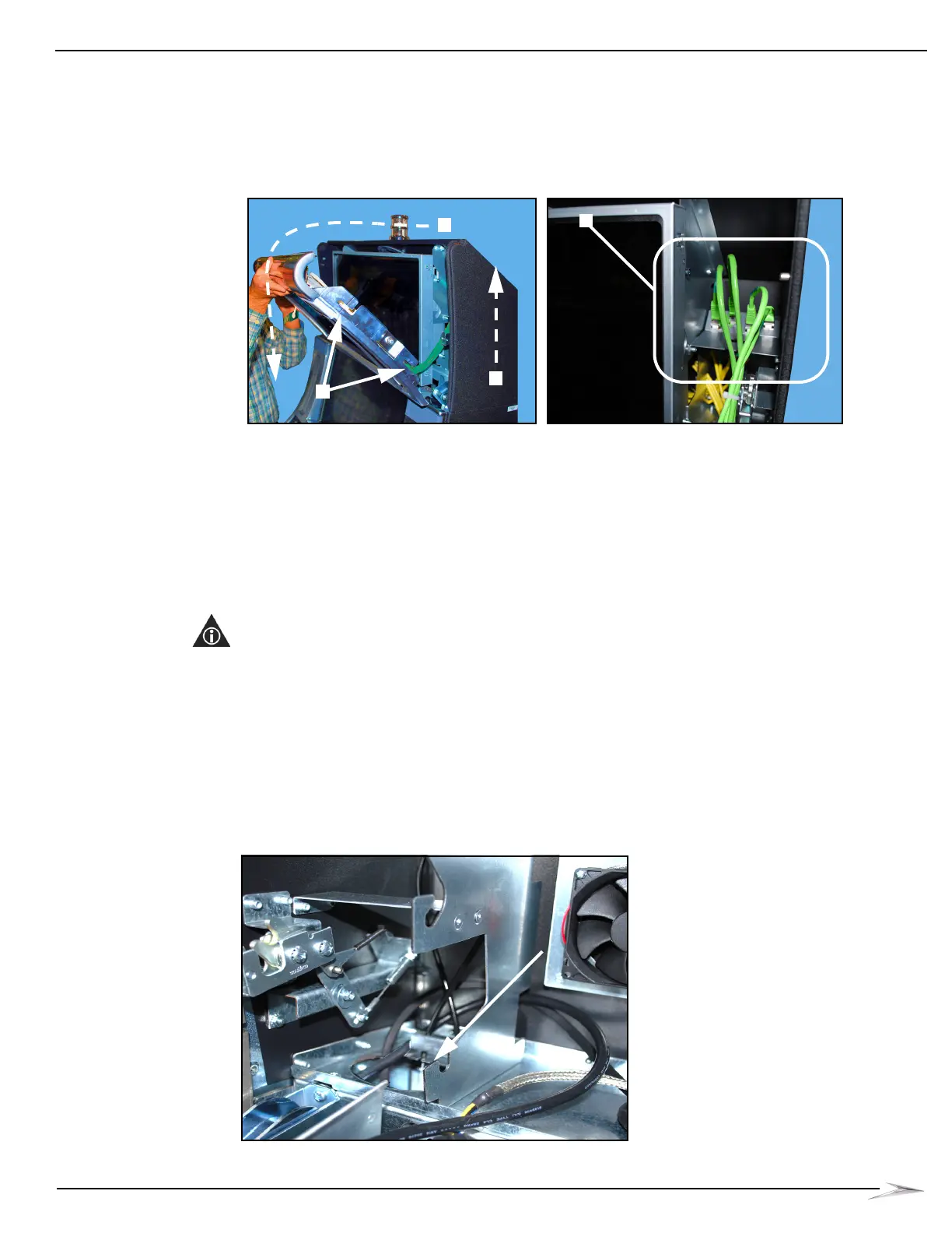 6 On the right side of the Accessory/Top Box Crown LCD, disconnect the four green Cat5E