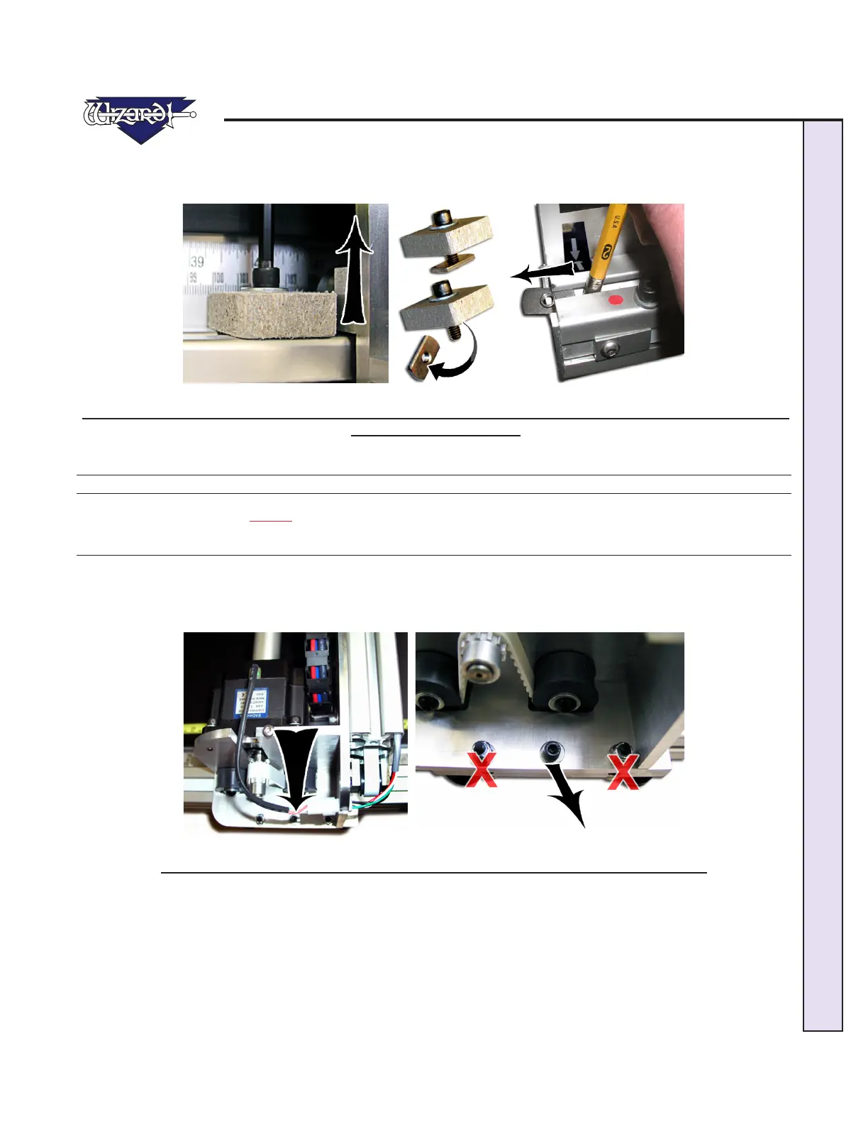 Fig A: Locate Allen Screw at the bottom of the Gantry. Fig B: Do not touch the other screws.