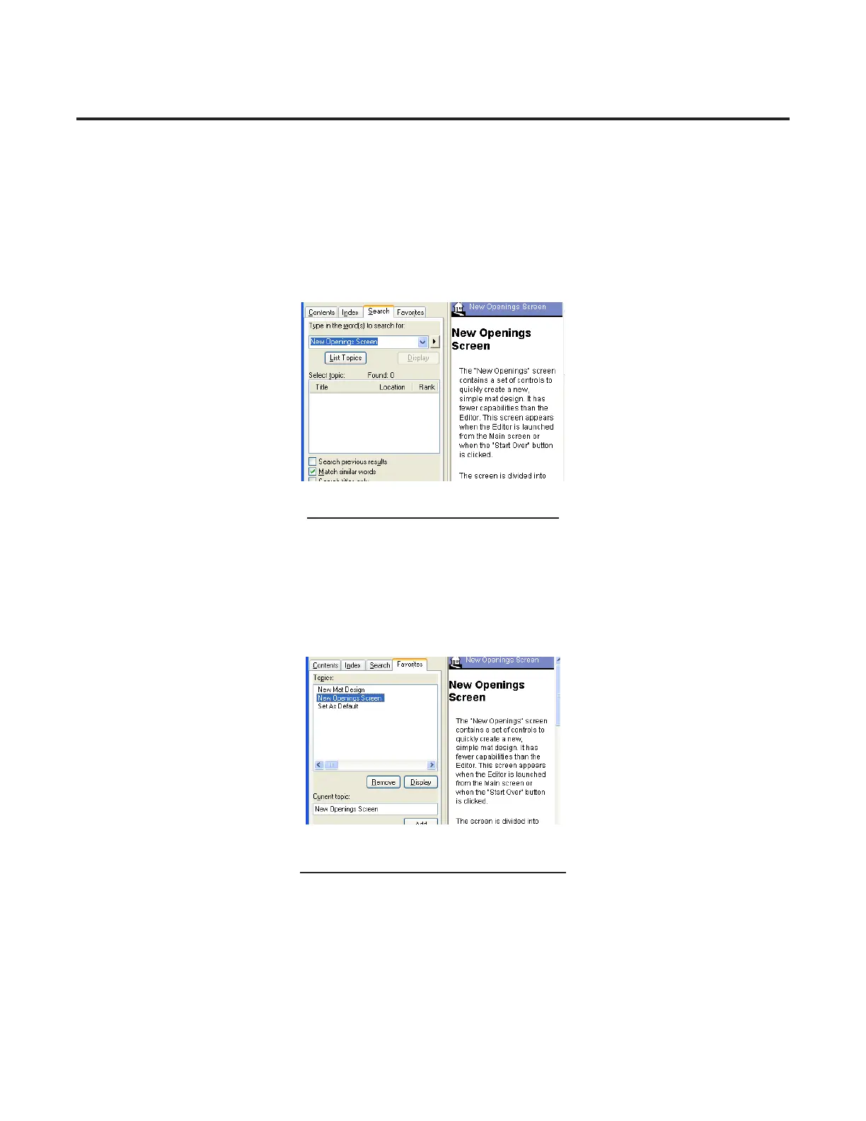 Fig G: The Search Tab on the Help screen.