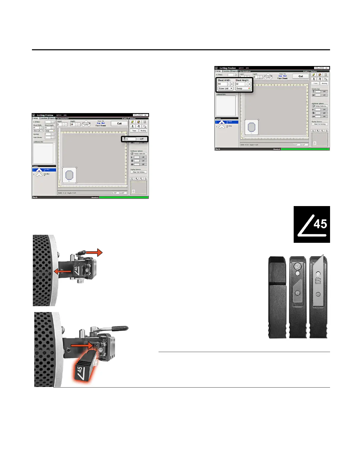 displays a diagram of the blade orientation (shown in