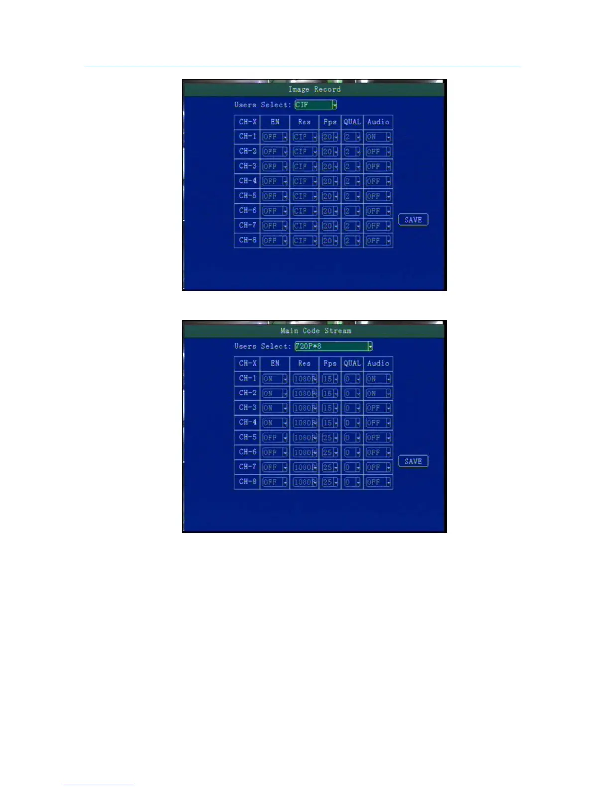 "Resolution": CIF, HD1, D1 ,720P,1080P resolution for choosing, press [OK] key to select.