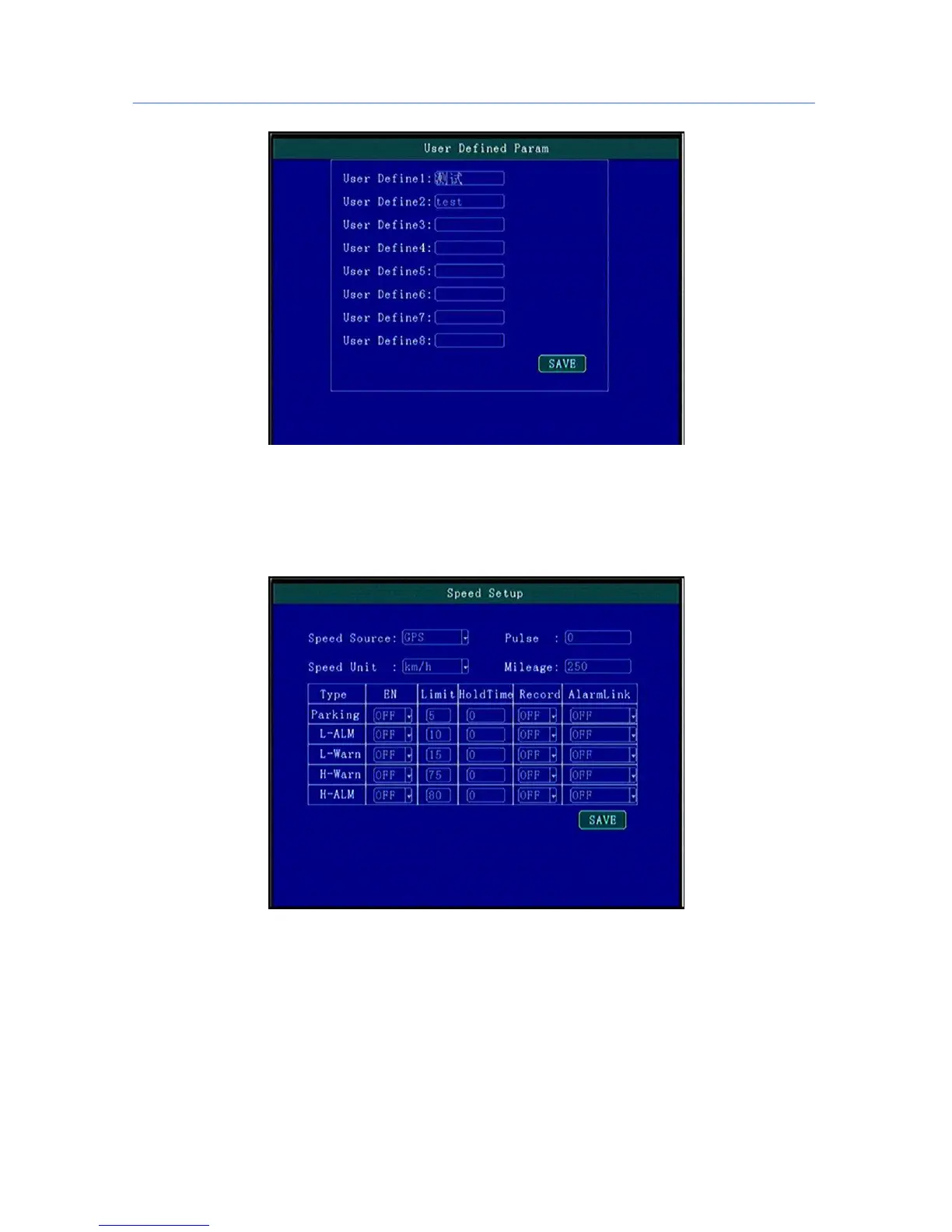 High/Low Speed or illegal driving alarm can be set.