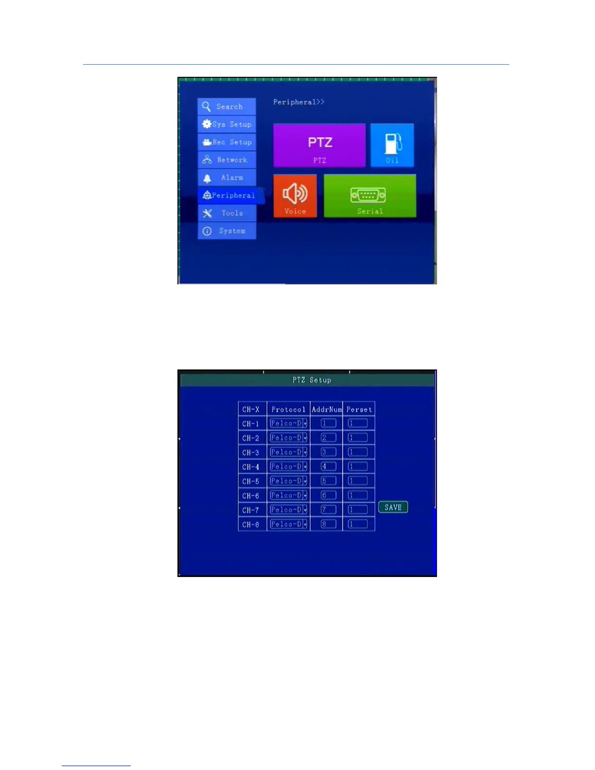 screen first, then press PTZ ,then use the direction keyboard to control **
