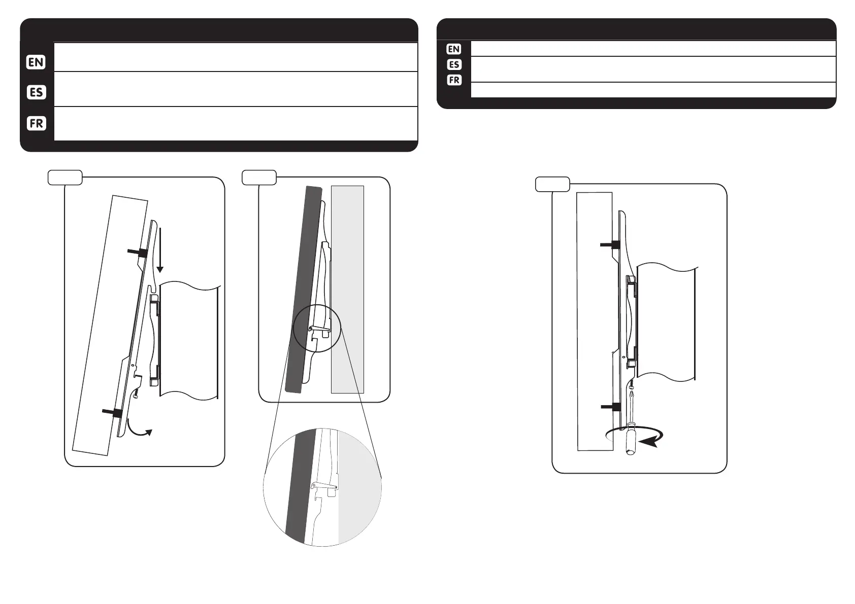 Hook top of bracket over the top of wall mount then lower down and tilt toward wall.