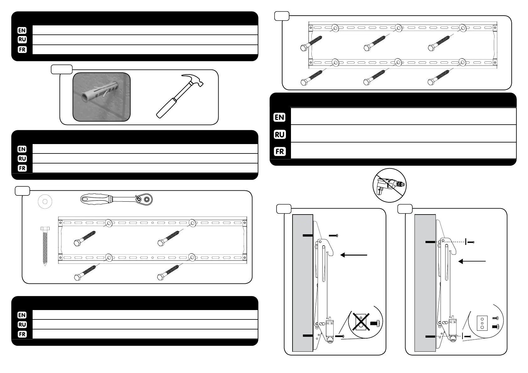 Прикрепите настенное крепление к стене с помощью винтов (А) и шаиб (U).