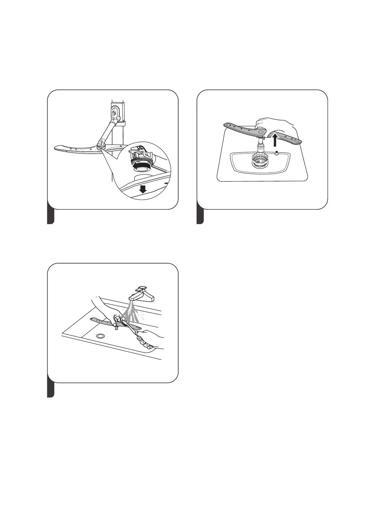 Volg onderstaande instructie om de sproeiarmen te reinigen.