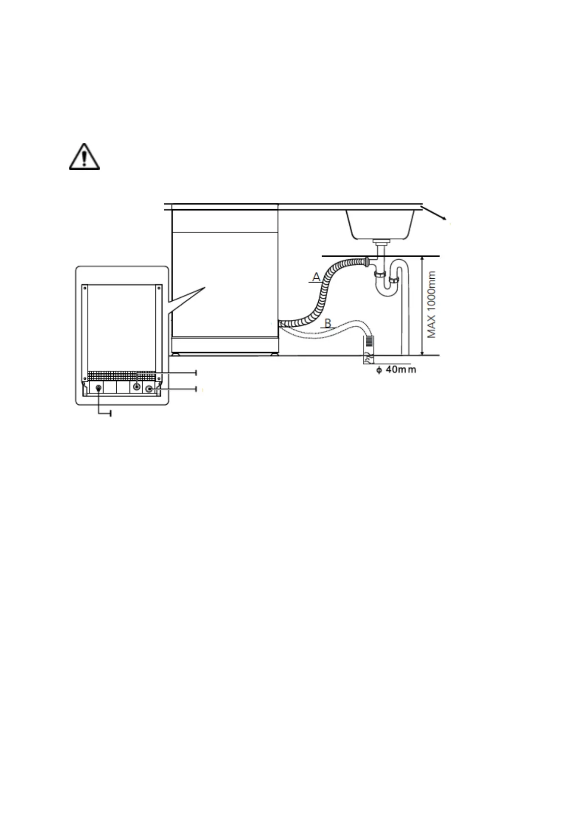 Doe de afvoerslang in de afvoer met een minimum diameter van 40mm, of laat de