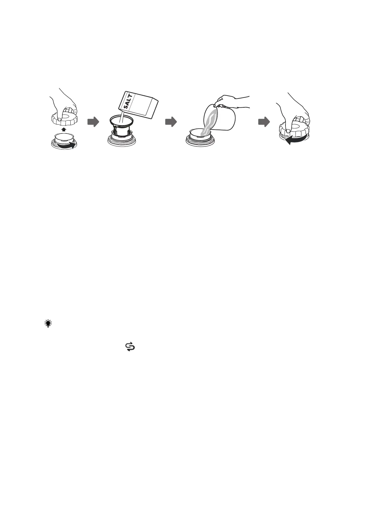 Volg onderstaande stappen voor het toevoegen van het zout aan de