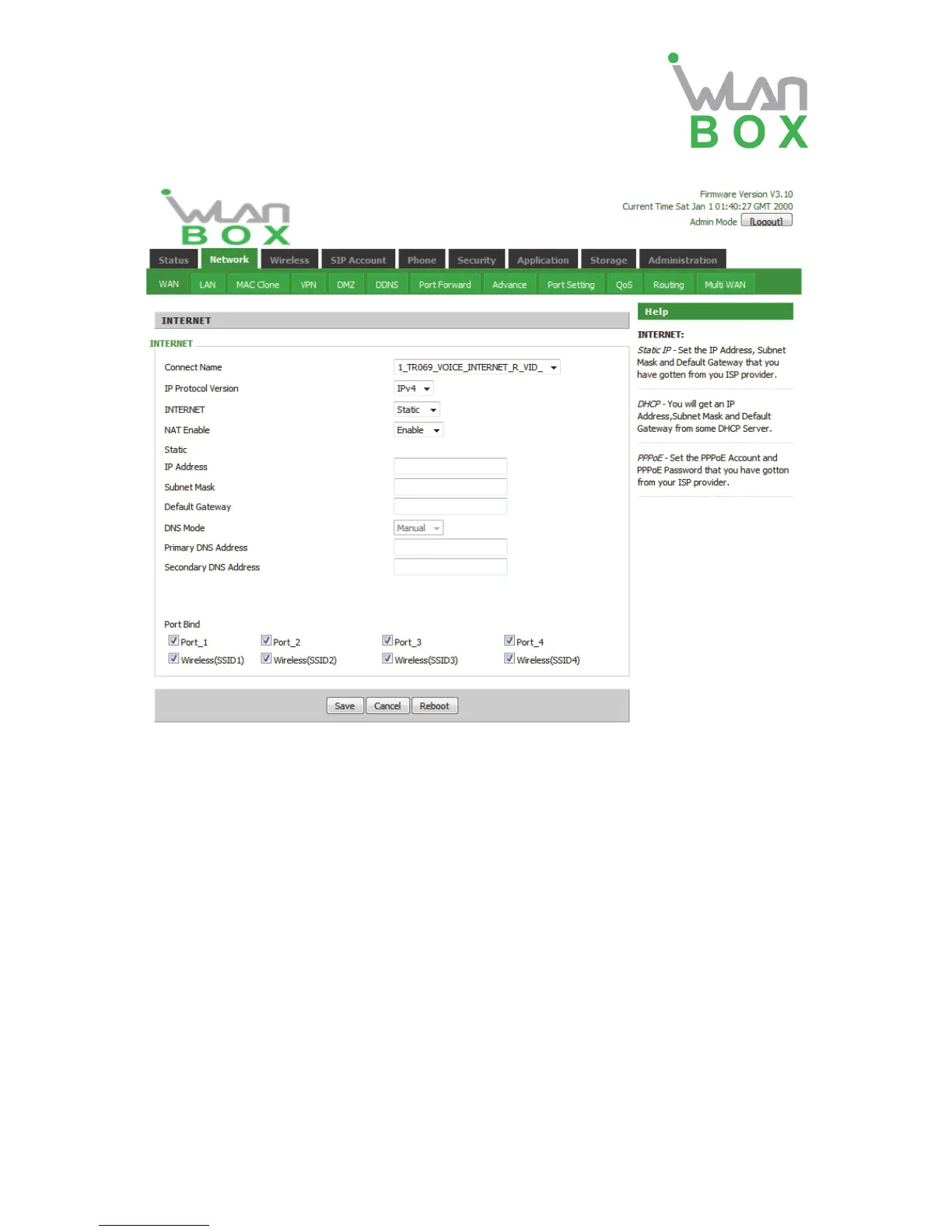 NAT Enable This requires multi-WAN port Page settings, please refer to 4.2.7