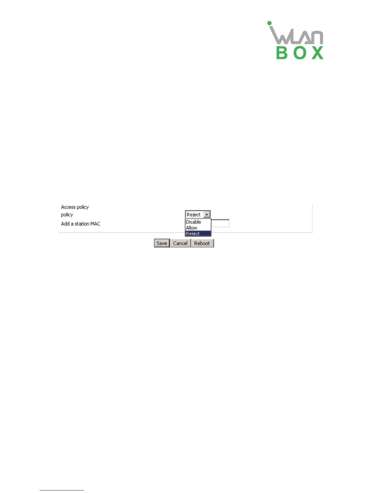 Access policy Wireless access control is used to allow or prohibit the specified