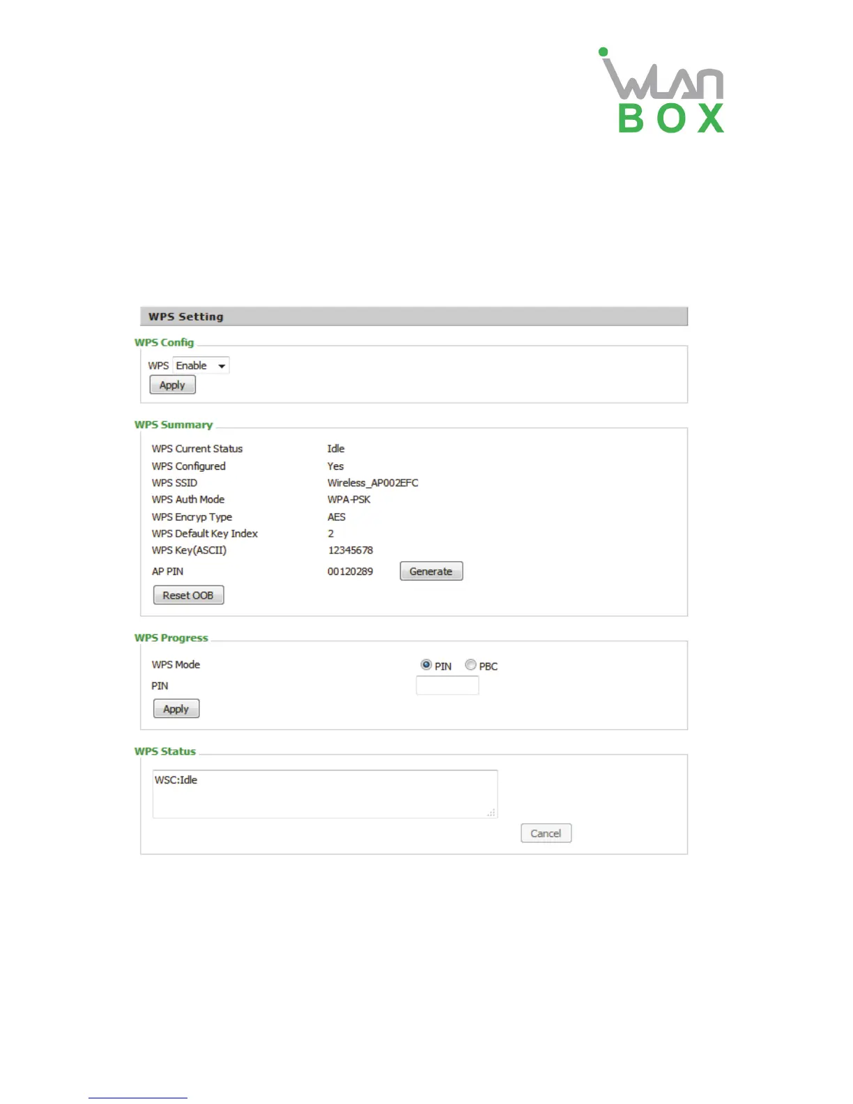 WPS Setting If or not enable WPS function