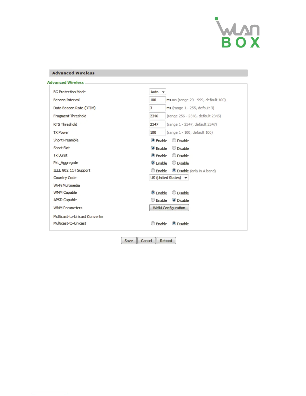 Fragment Threshold Specify the fragment threshold for the packet, when the
