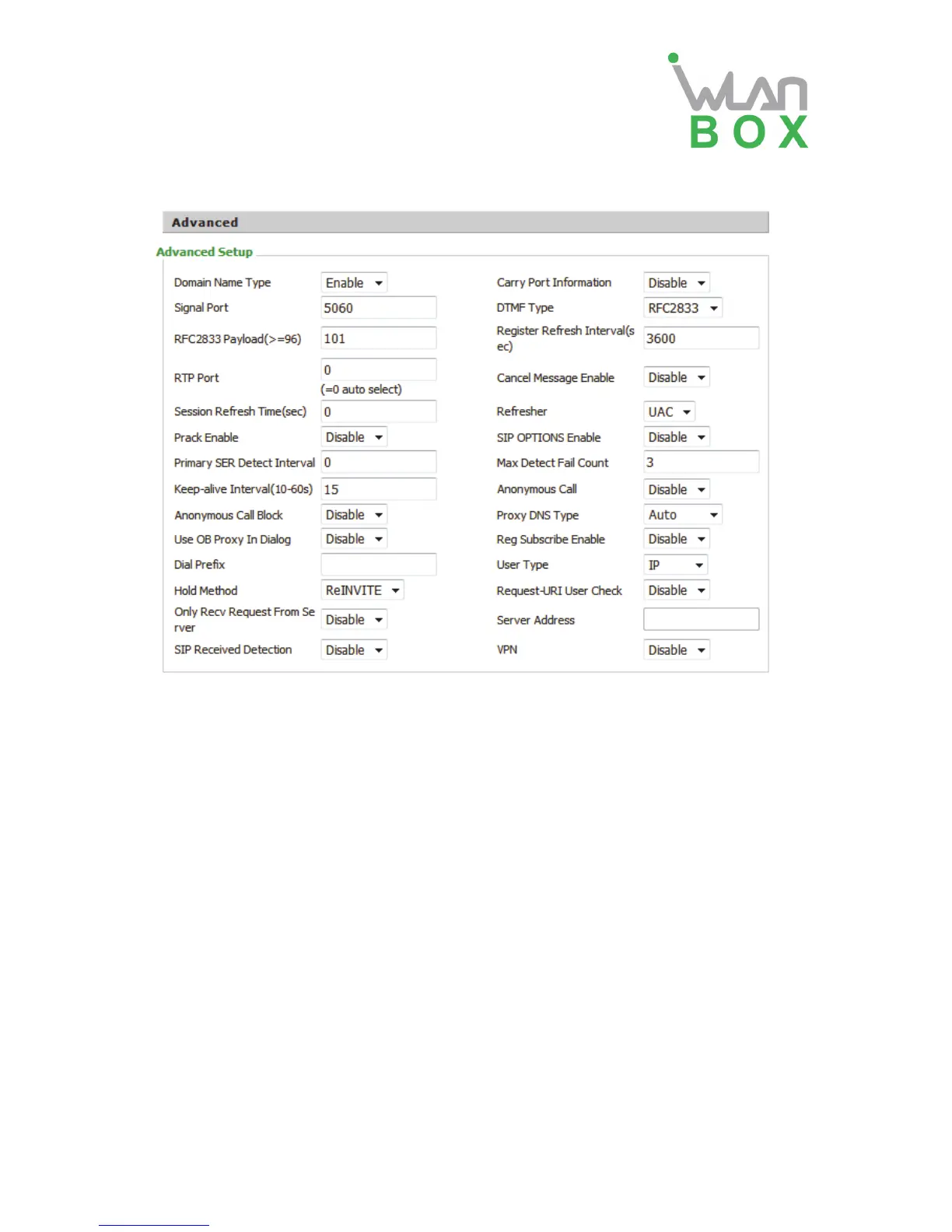 DTMF Type Choose the DTMF type from Inbound, RFC2833 and SIP