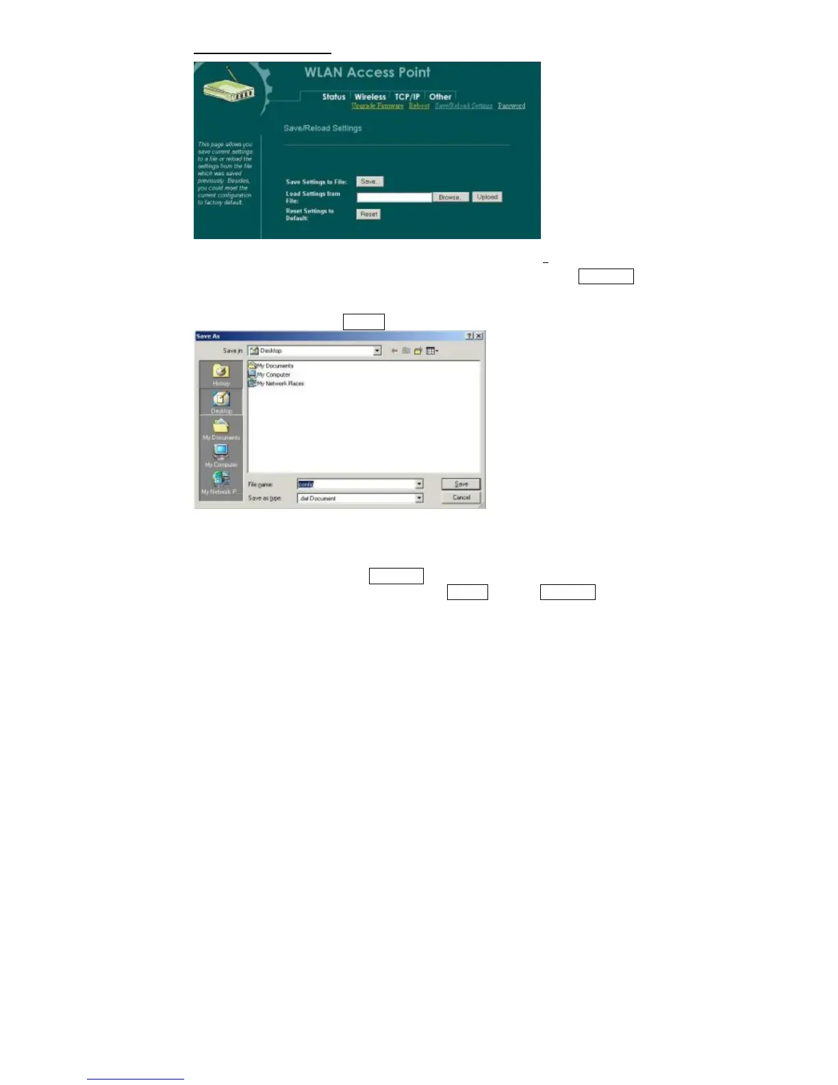 Save Settings to File: Click SAVE.. to save the current configuration to file.