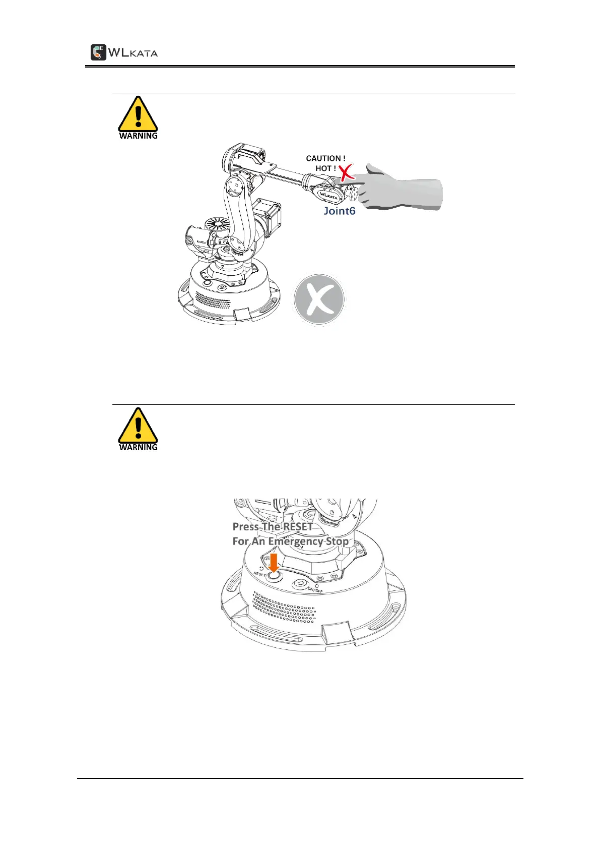 When Mirobot is powered on, DO NOT (!) touch the surface of joint 6 motor