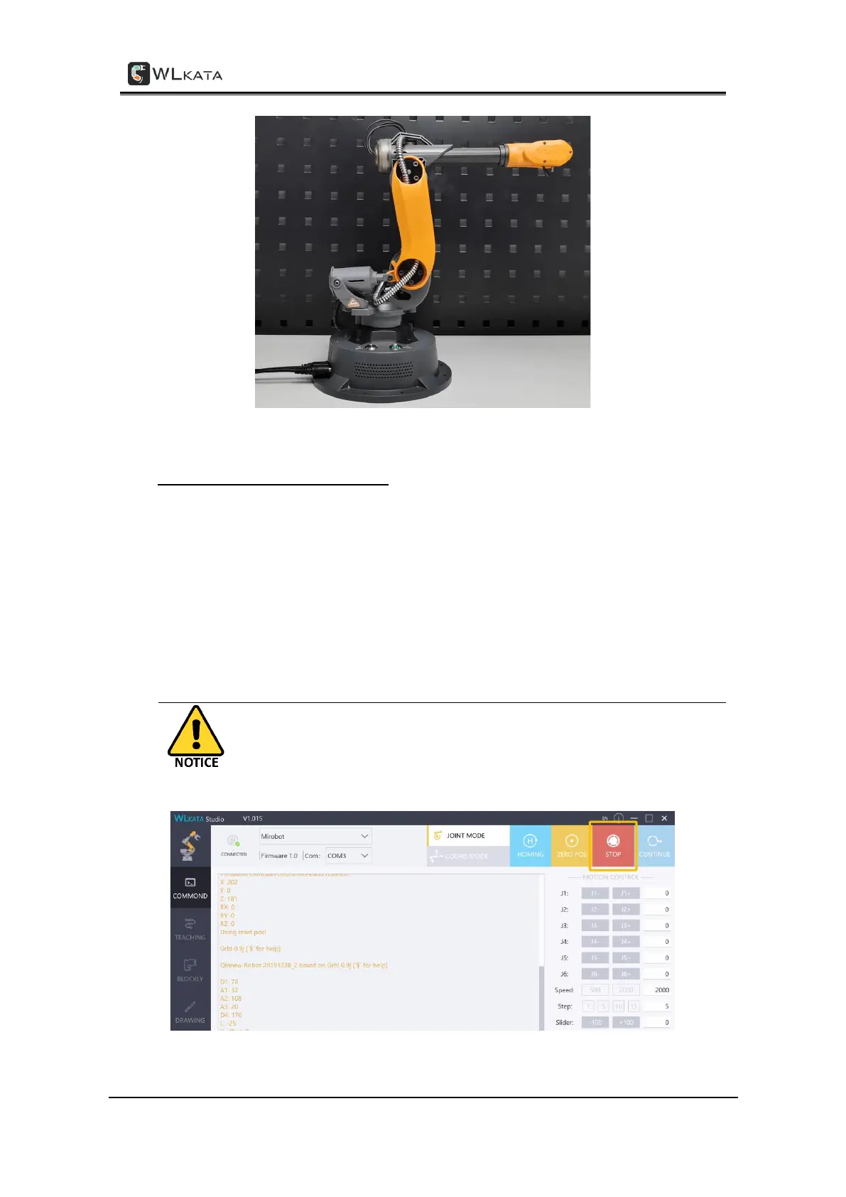 In case of any illegal operation of the manipulator, click the STOP button immediately in the