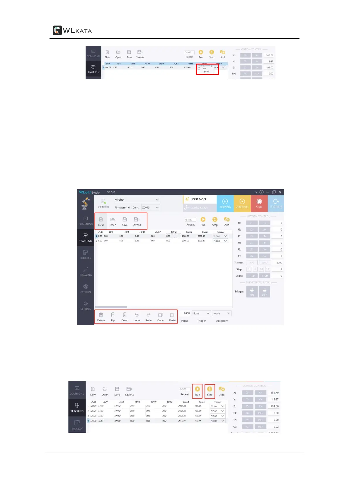 Open: lookup and open a Teaching & Play file created by WLKATA Studio earlier.