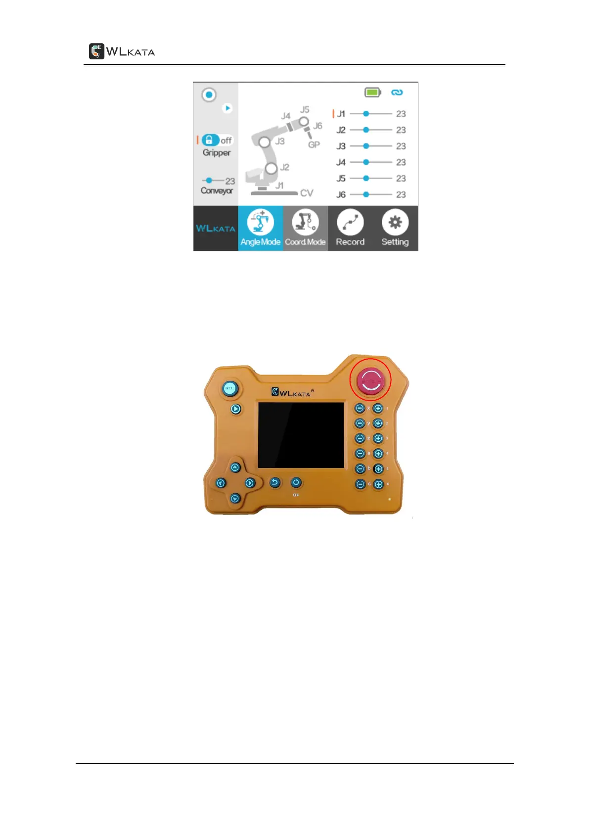 (2)First of all, it is necessary to reset the manipulator. Press and hold the red button on