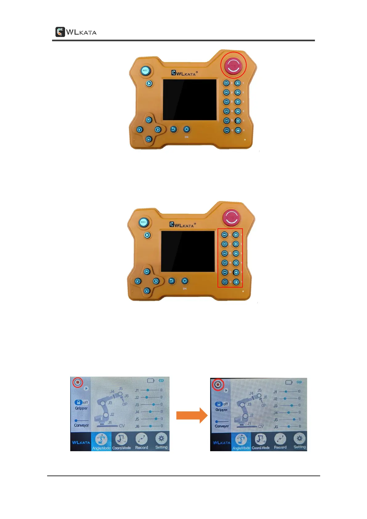 (3) Press the six groups of buttons on the right side of the teach pendant to control the