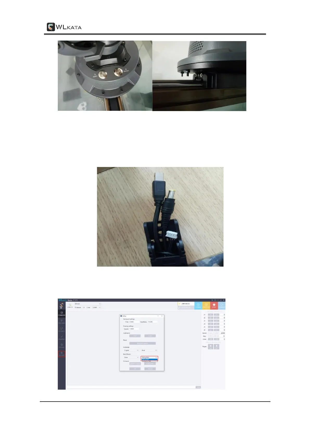 on the back) to the robotic arm with an IDC cable. Connect one end of the sliding rail motor wire