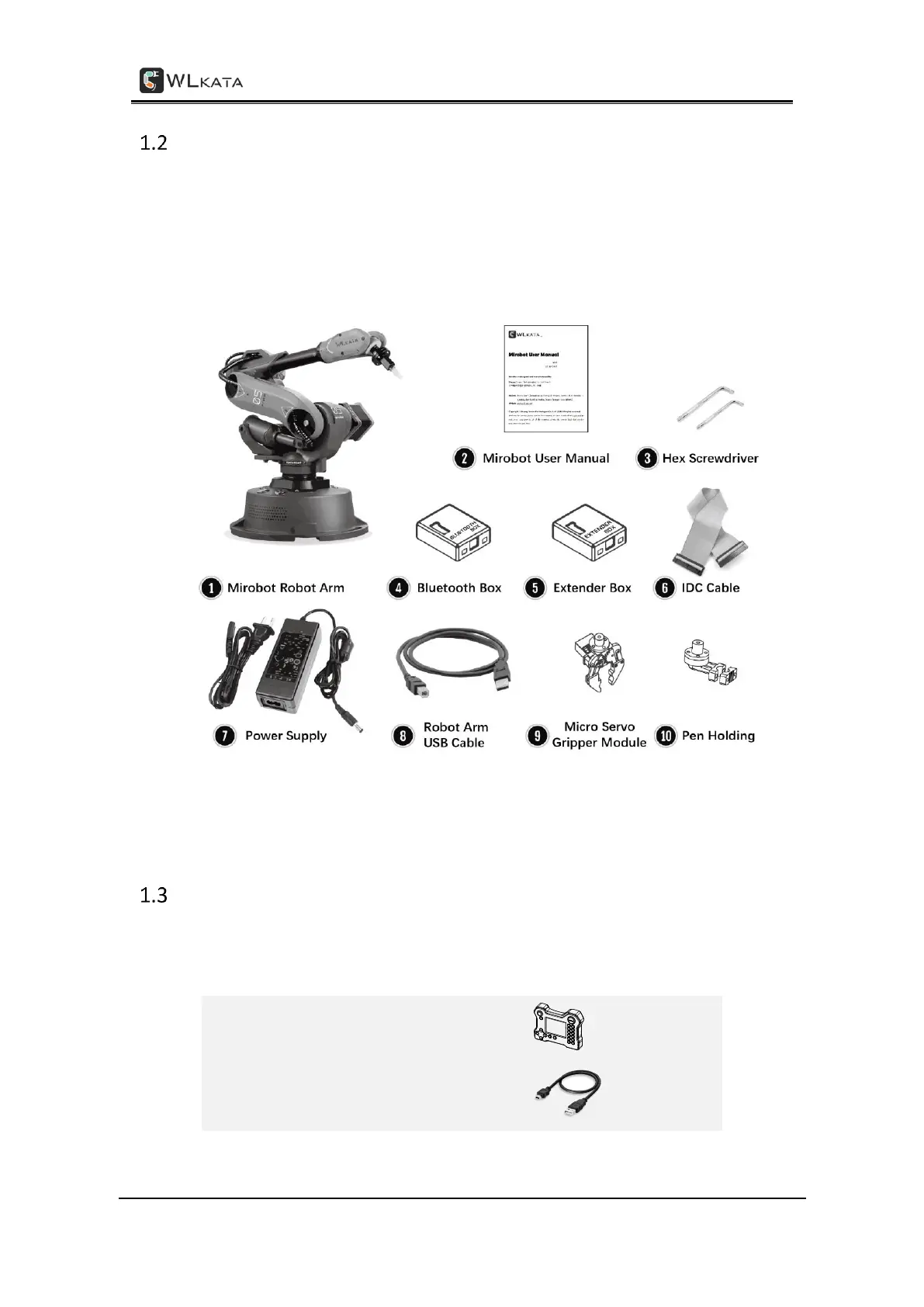 functions of the Mirobot. There are 10 items in the standard set package, including the Mirobot