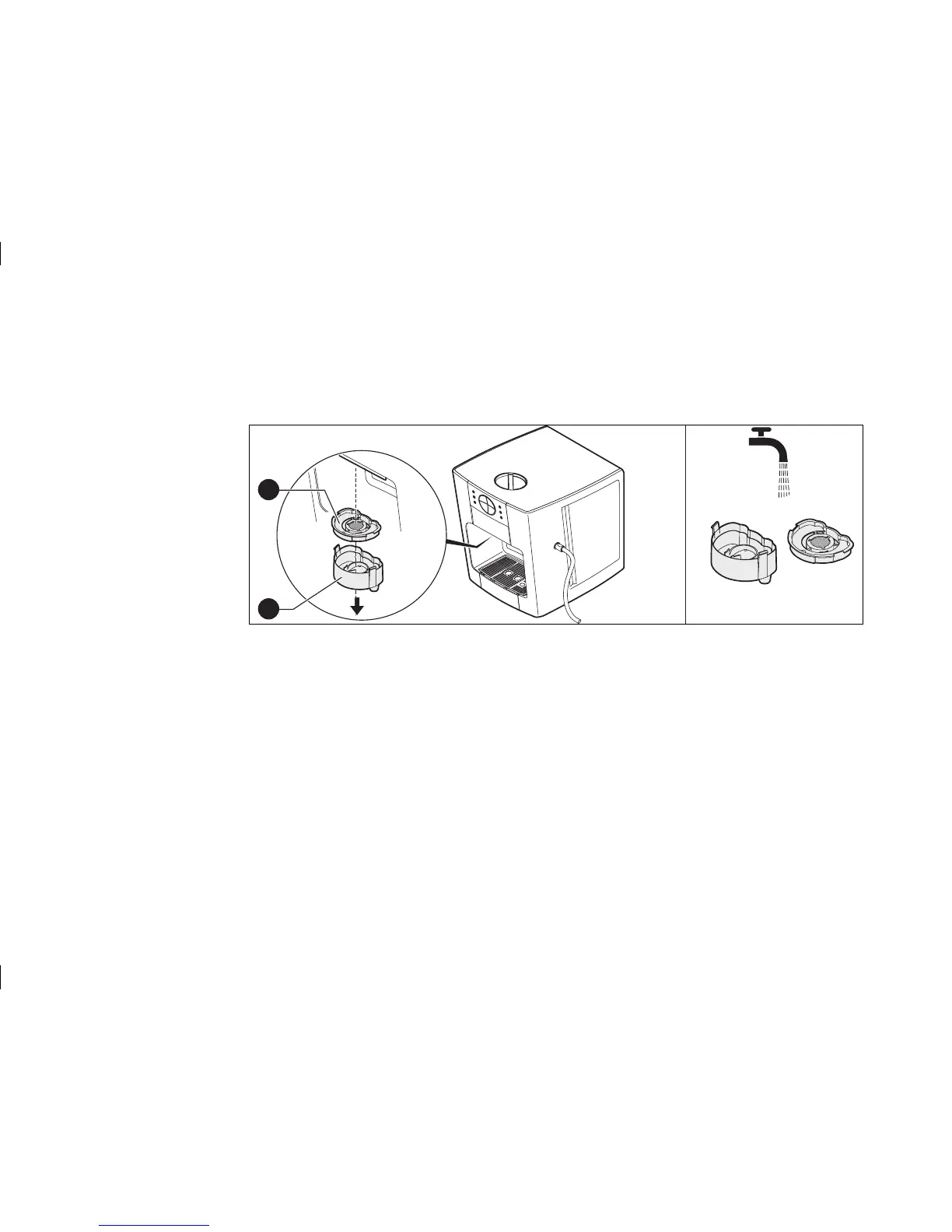 > Pull the coffee spout cassette (1) with the sieve insert (2) downwards.