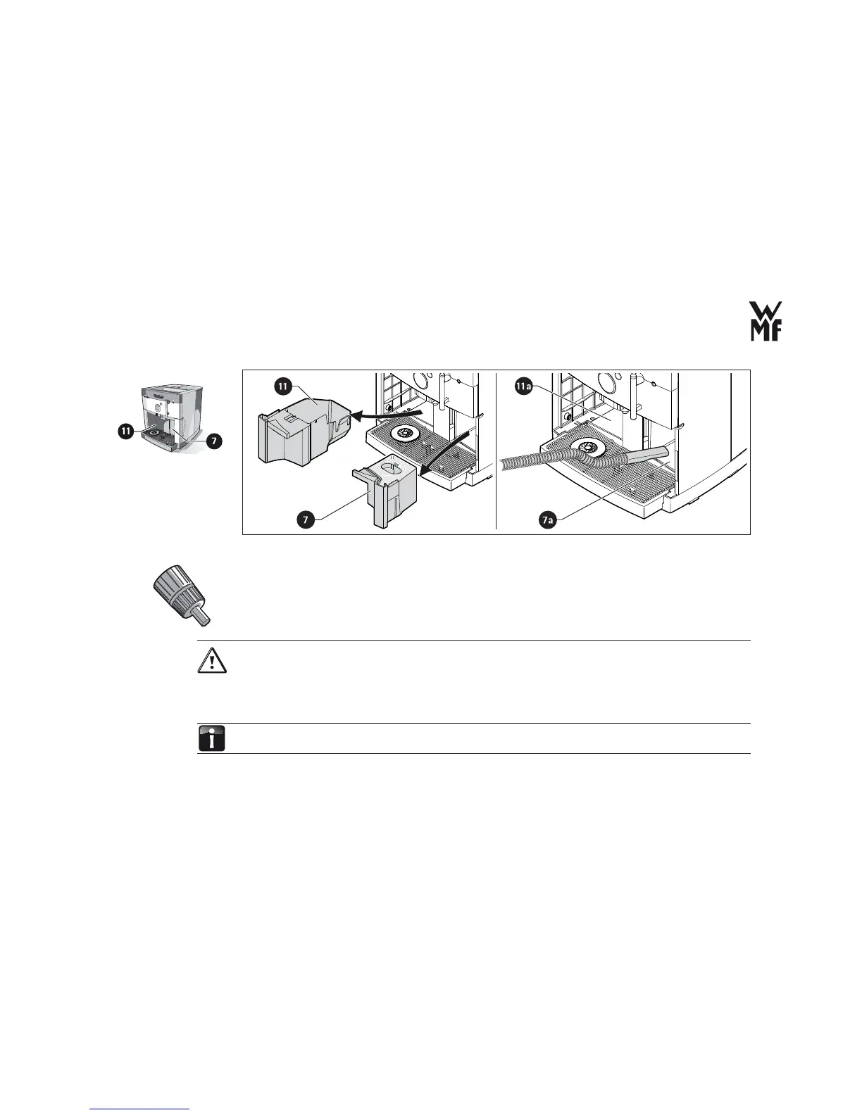 > Pull out the water tank (7) and the coffee grounds container (11).