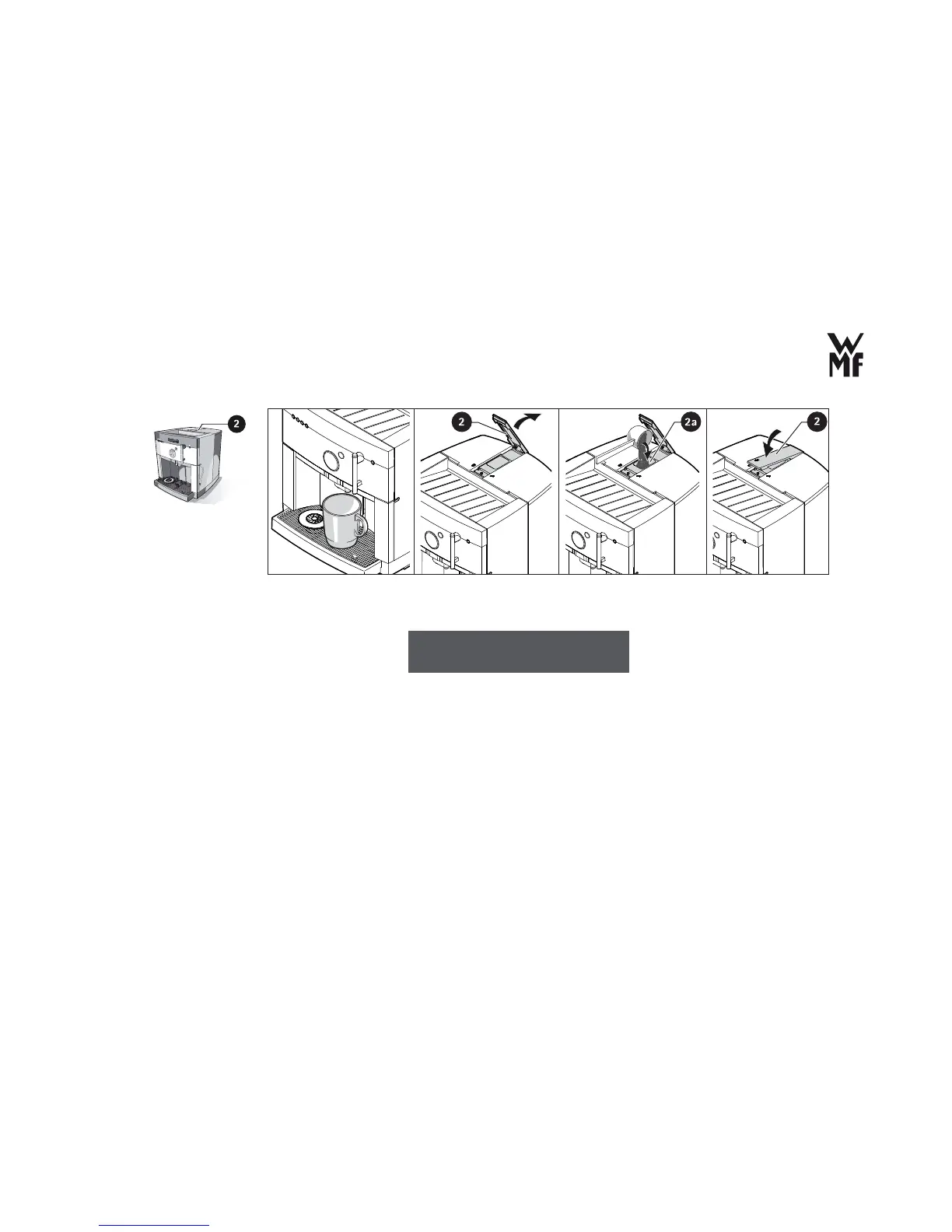 > Open the lid of the ground coffee hopper (2).
