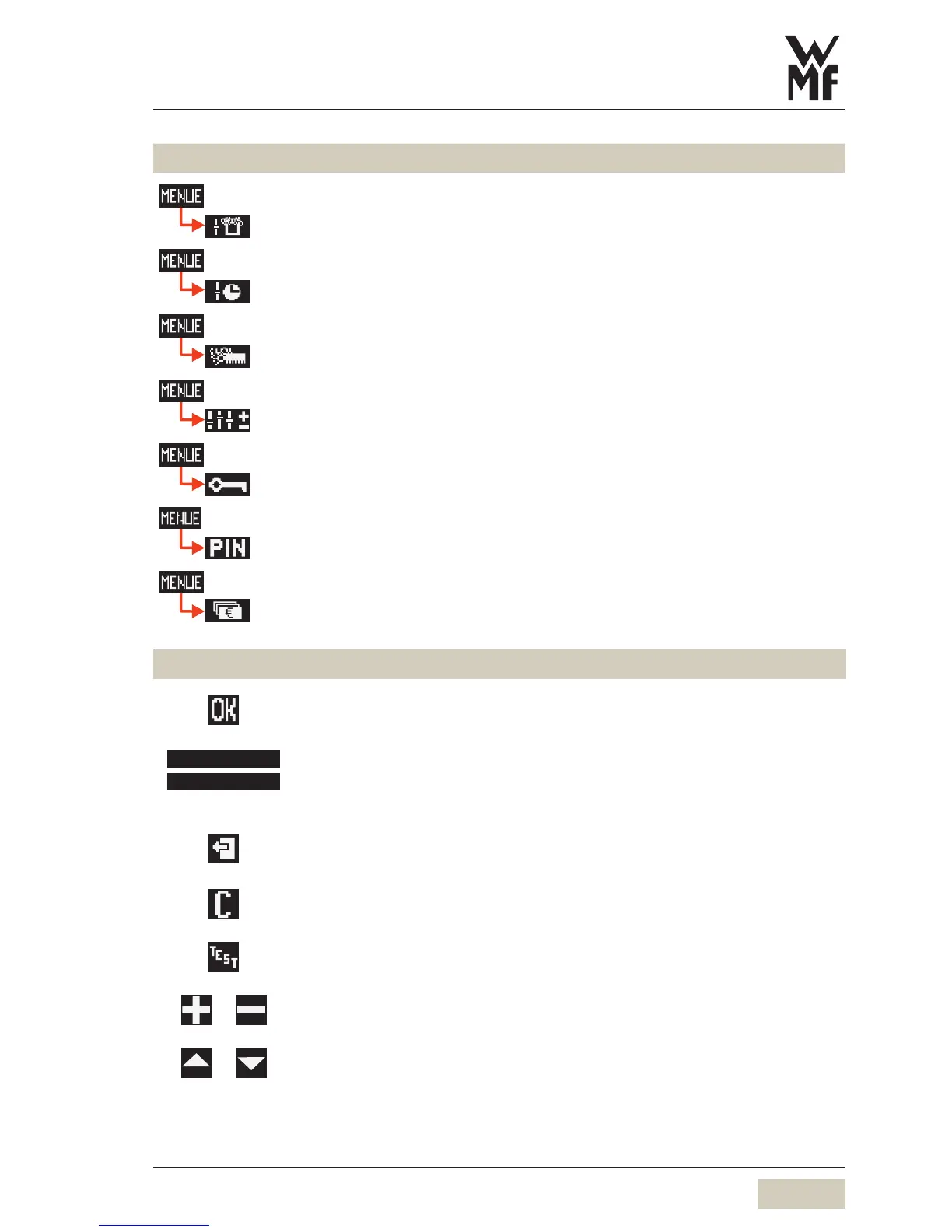 WMF 2000 S - Main Menu and Control Pad Functions