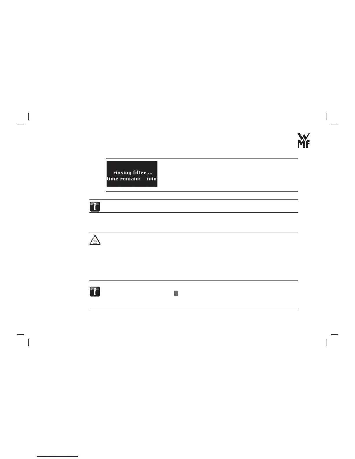 The fi lter rinsing programme starts.