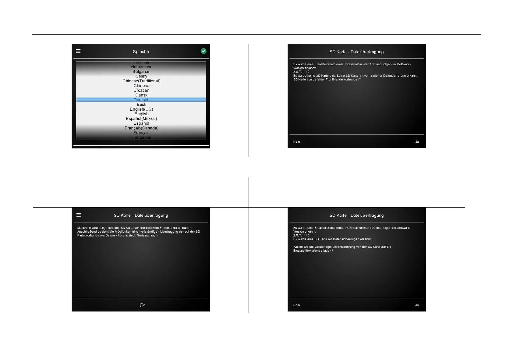 Further description of the process when a data backup is to be transferred from the SD card and the query has been answered with Yes: