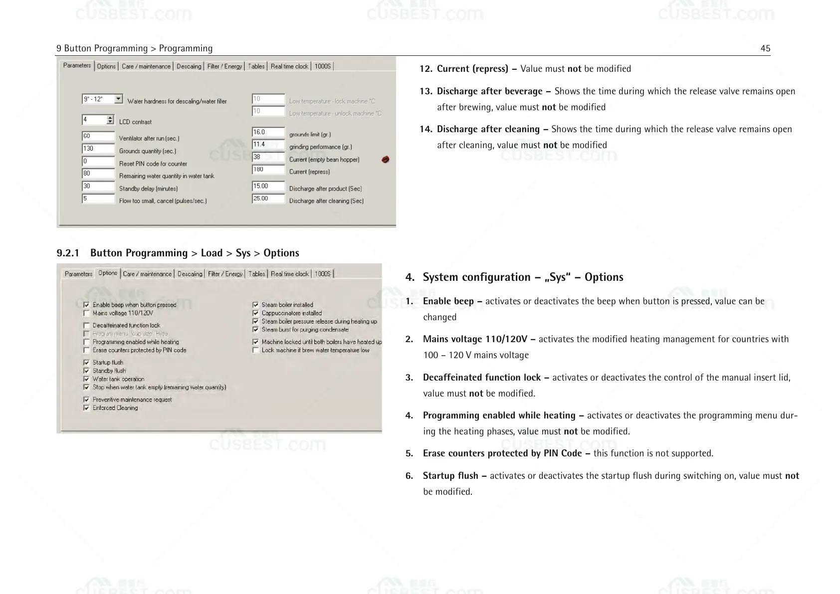 6. Startup flush – activates or deactivates the startup flush during switching on, value must not