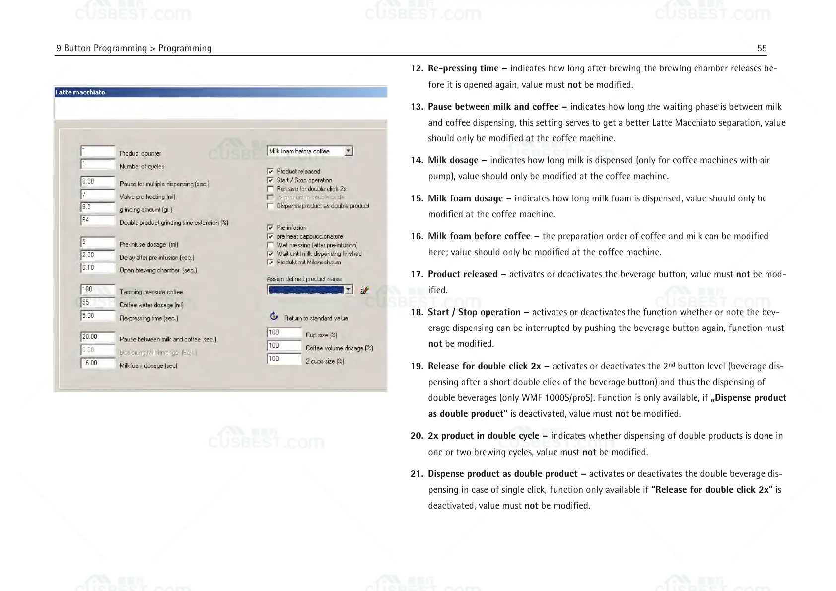 pump), value should only be modified at the coffee machine.