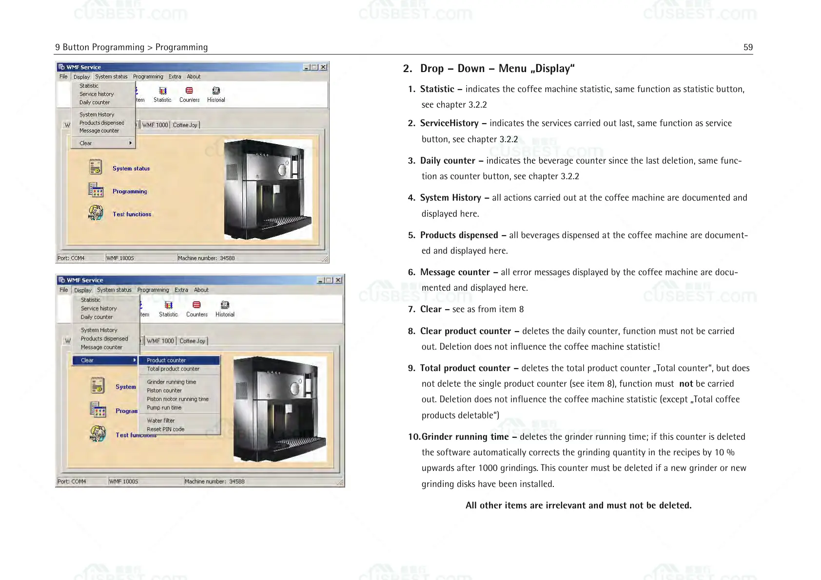 10. Grinder running time – deletes the grinder running time; if this counter is deleted