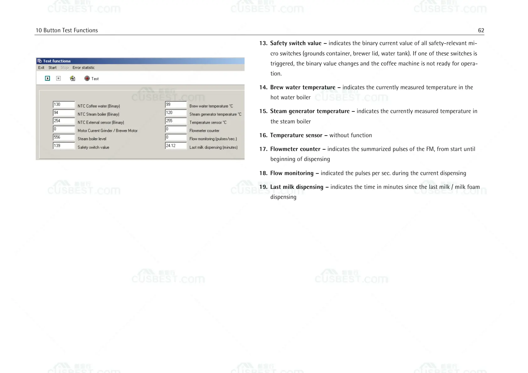 13. Safety switch value – indicates the binary current value of all safety-relevant mi-