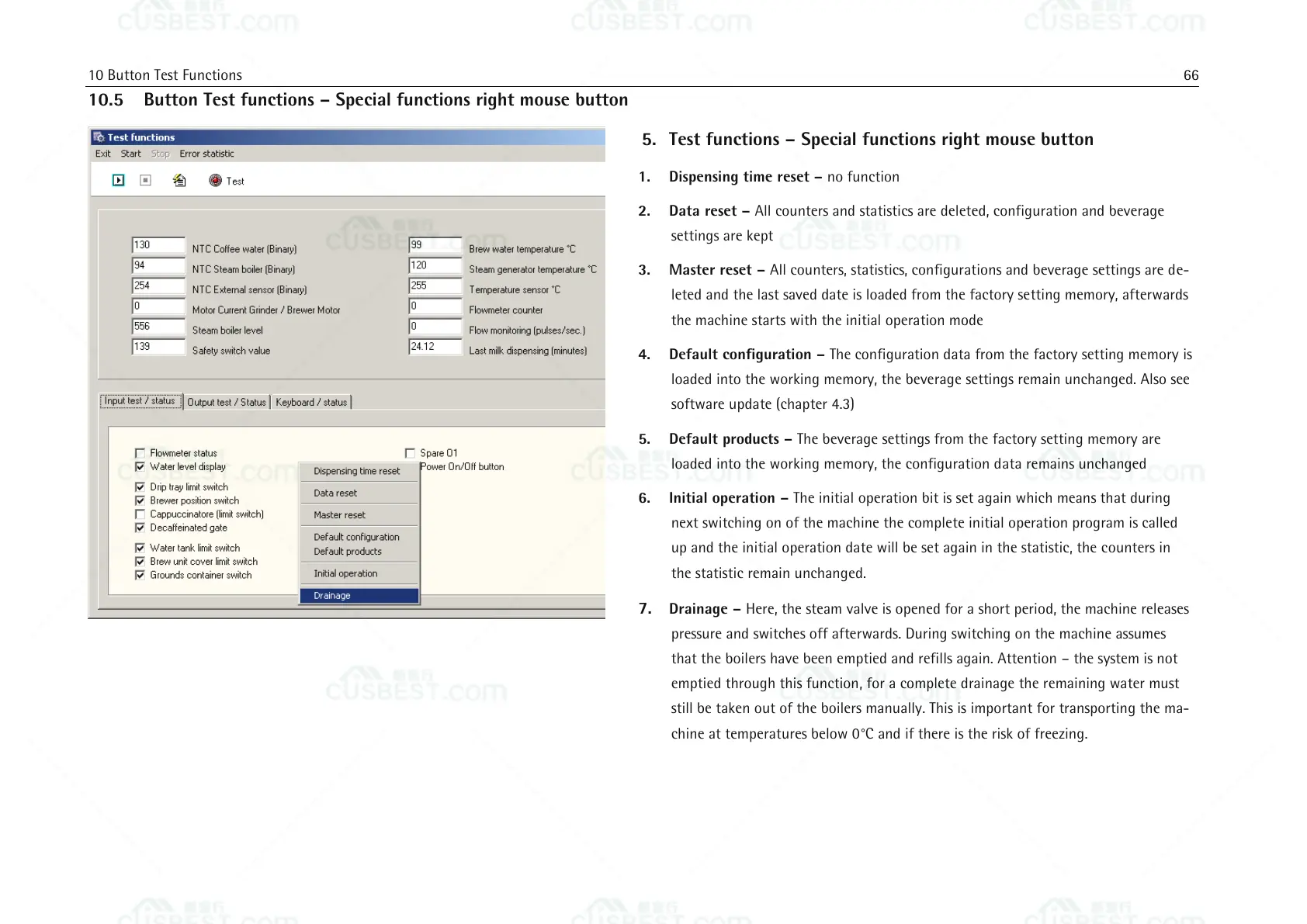 2. Data reset – All counters and statistics are deleted, configuration and beverage