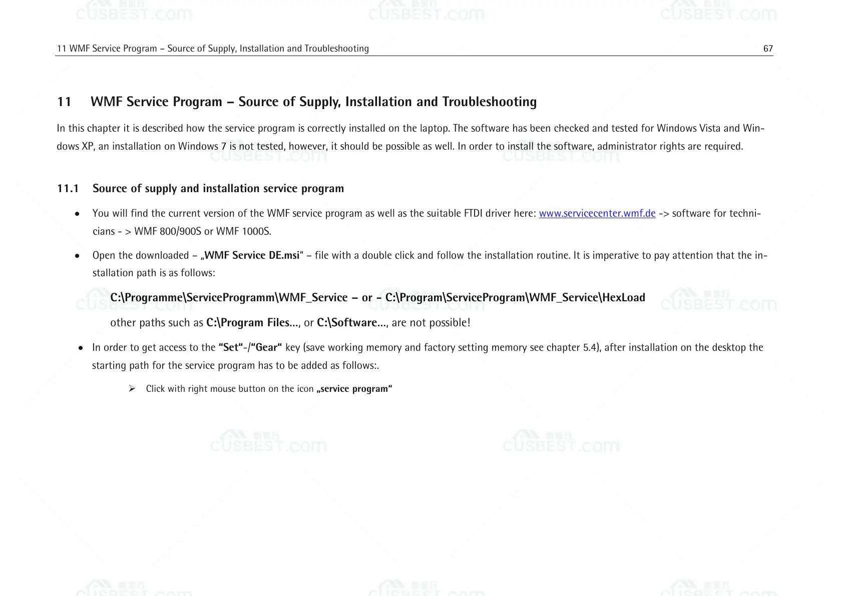 11 WMF Service Program – Source of Supply, Installation and Troubleshooting 67