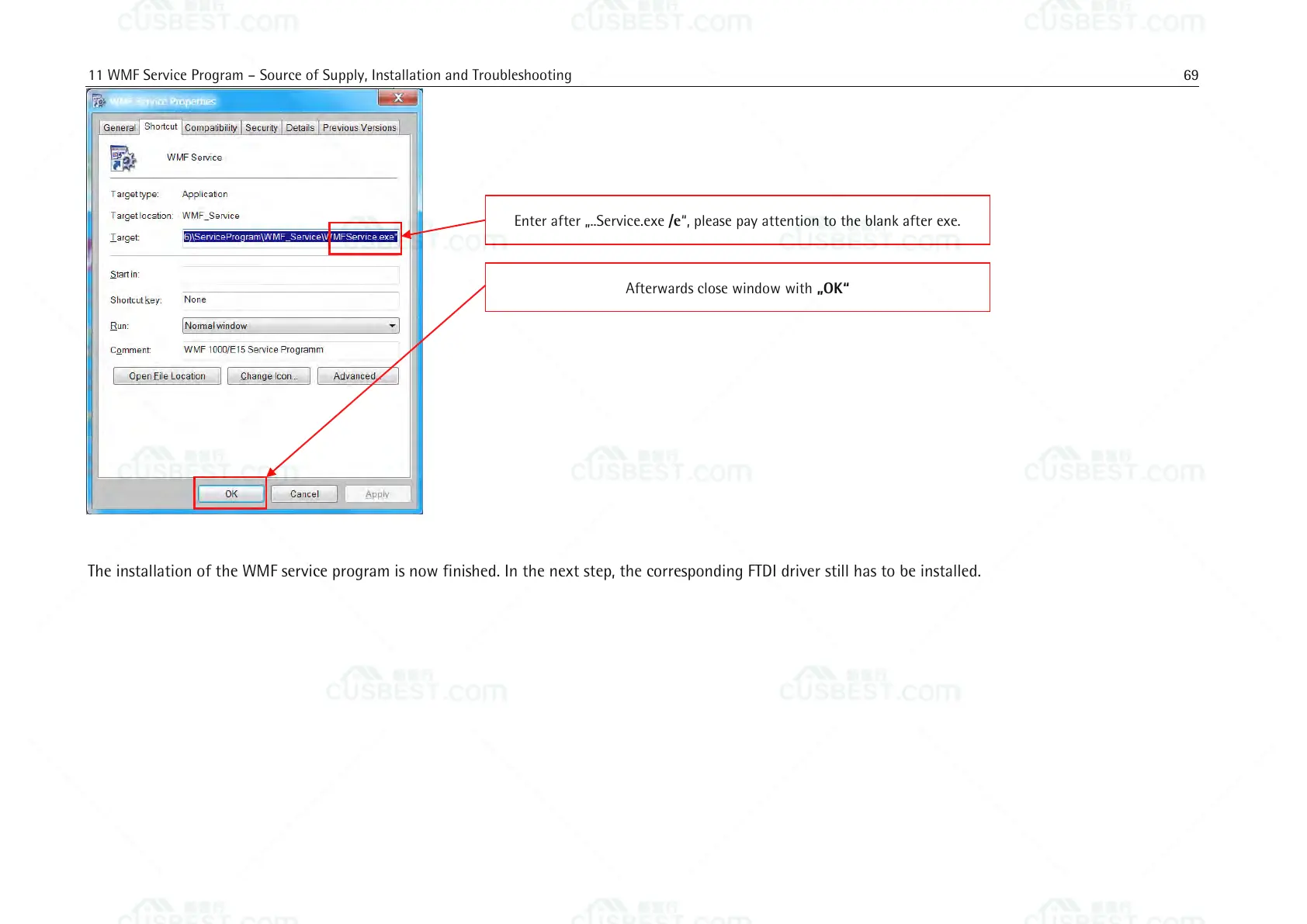 The installation of the WMF service program is now finished. In the next step, the corresponding FTDI driver still has to be installed.