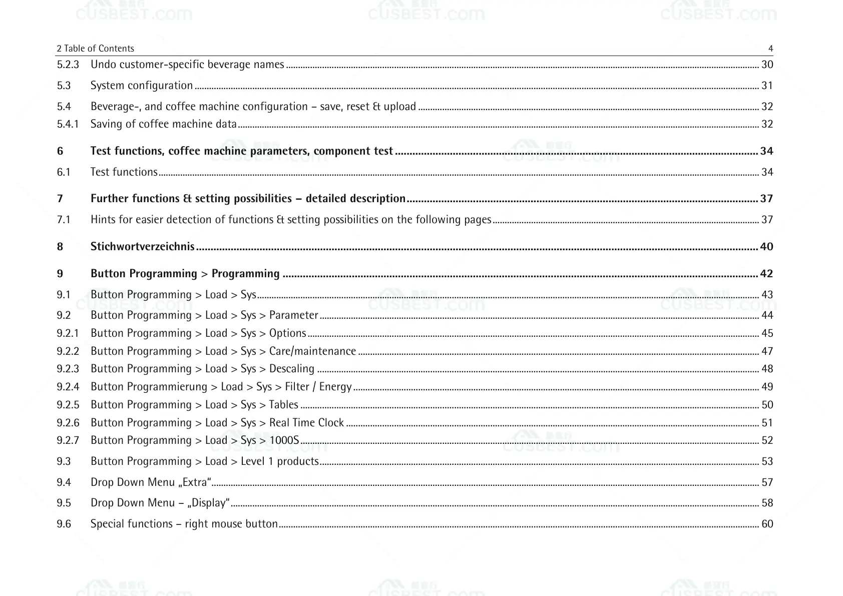 6 Test functions, coffee machine parameters, component test .............................................................................................................................. 34