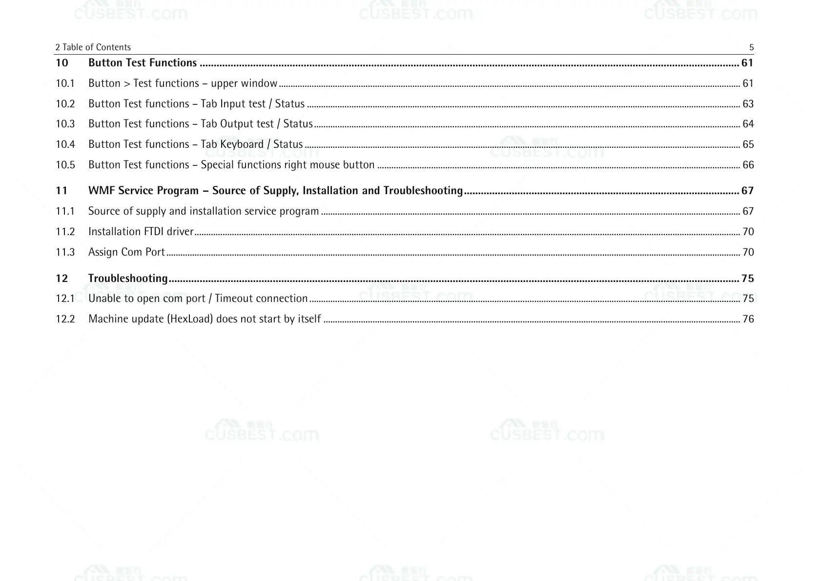 10 Button Test Functions ................................................................................................................................................................................................ 61