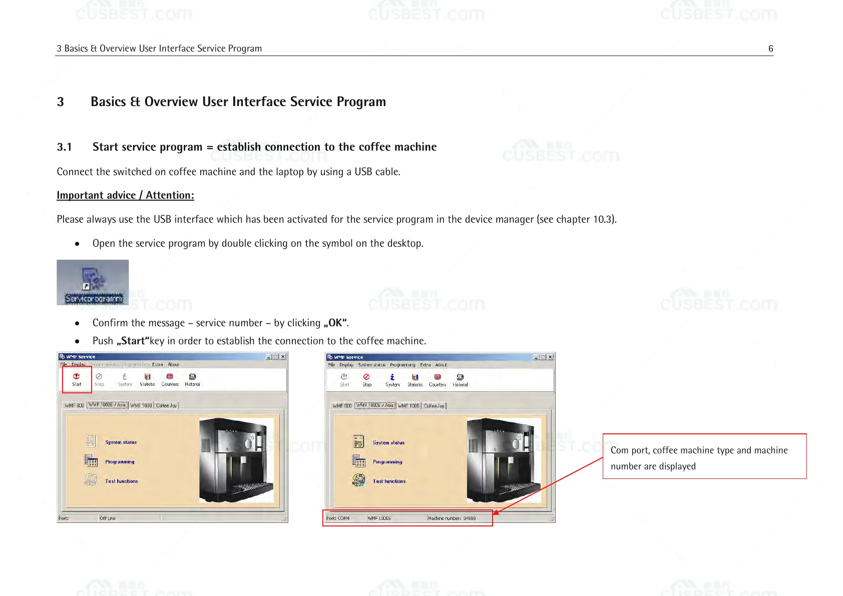3.1 Start service program = establish connection to the coffee machine