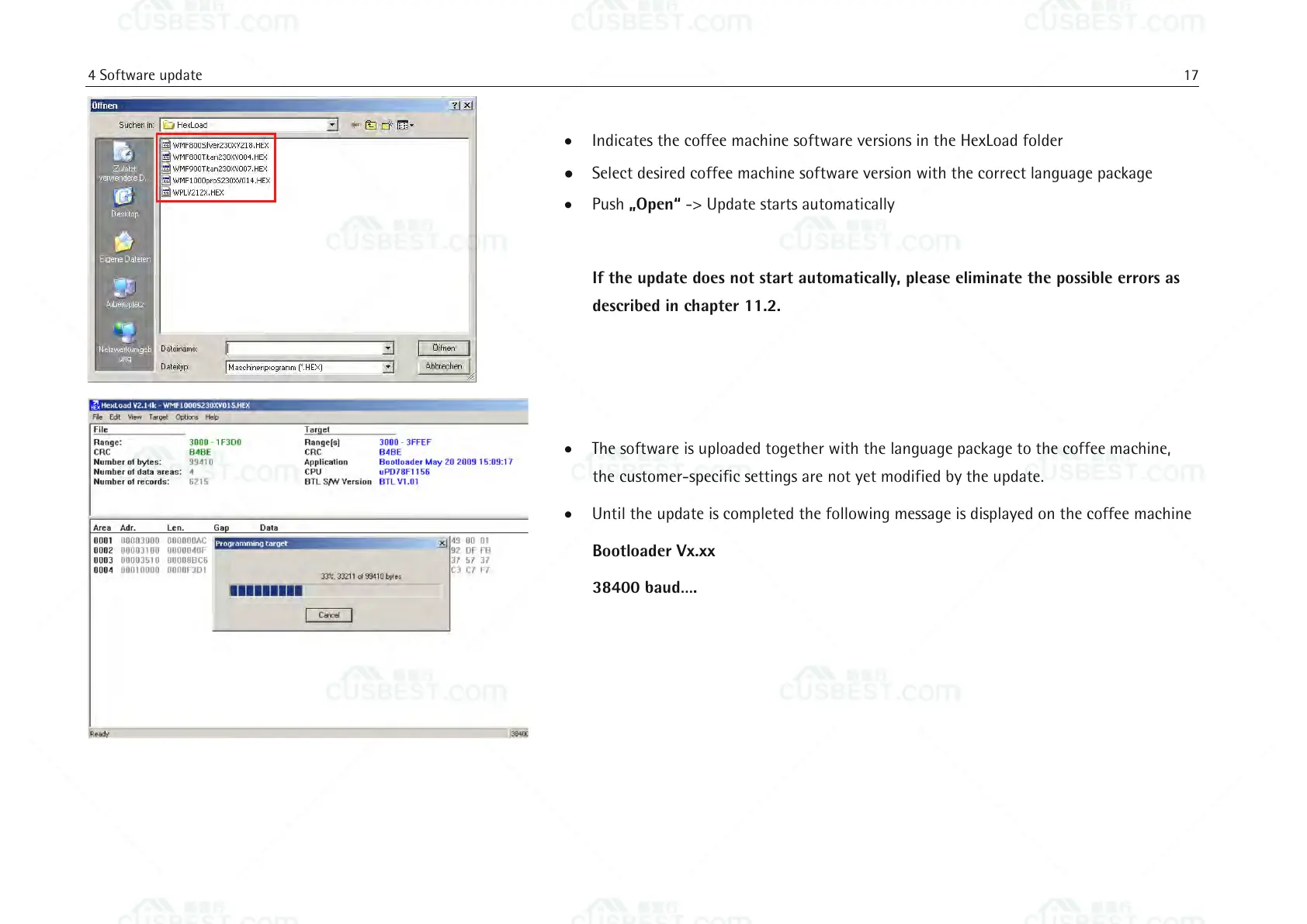 The software is uploaded together with the language package to the coffee machine,
