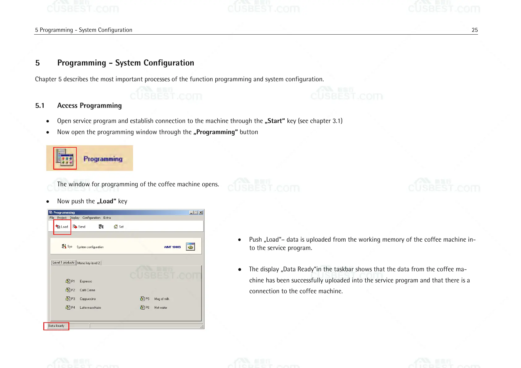 Push „Load“– data is uploaded from the working memory of the coffee machine in-