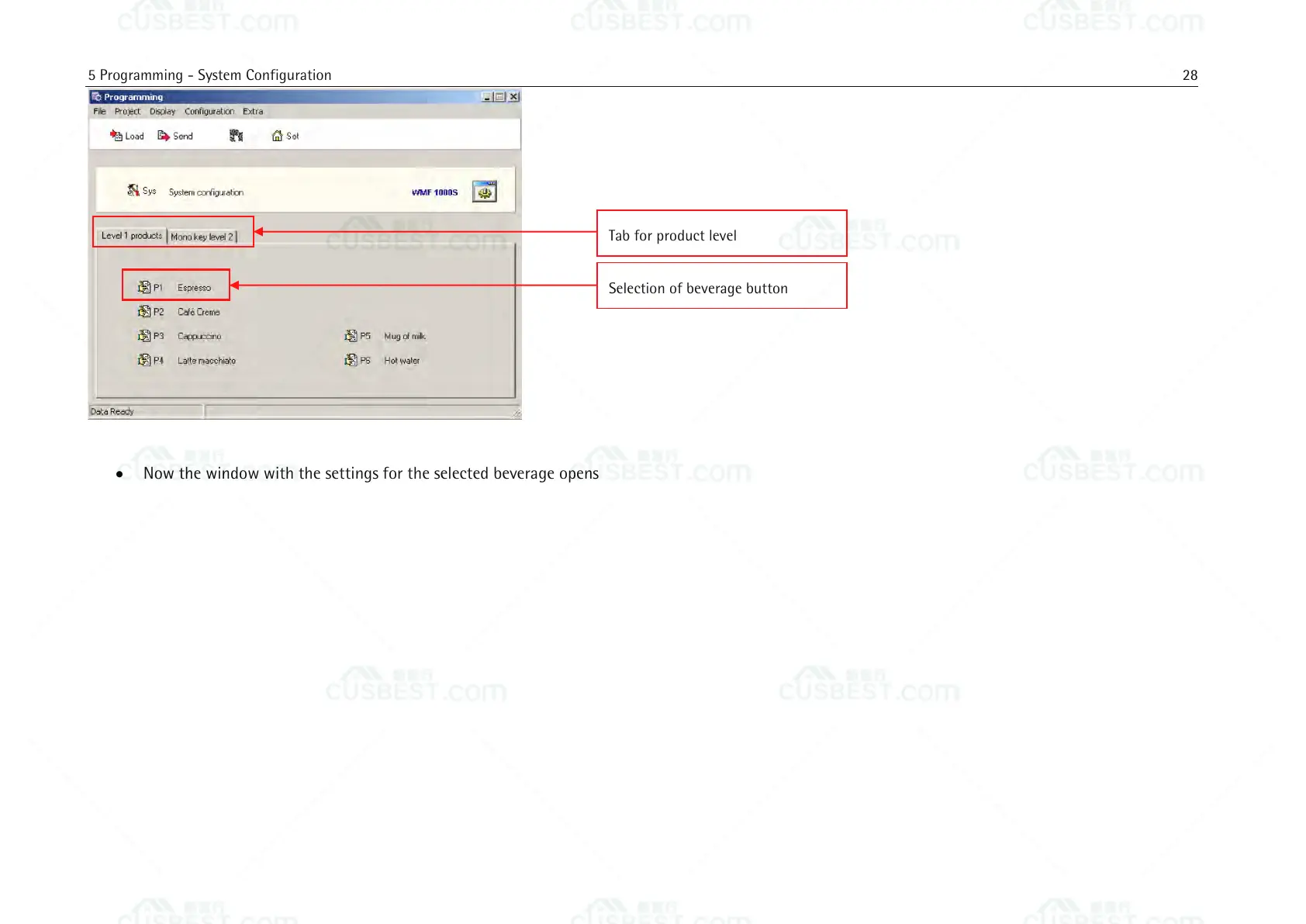 Now the window with the settings for the selected beverage opens