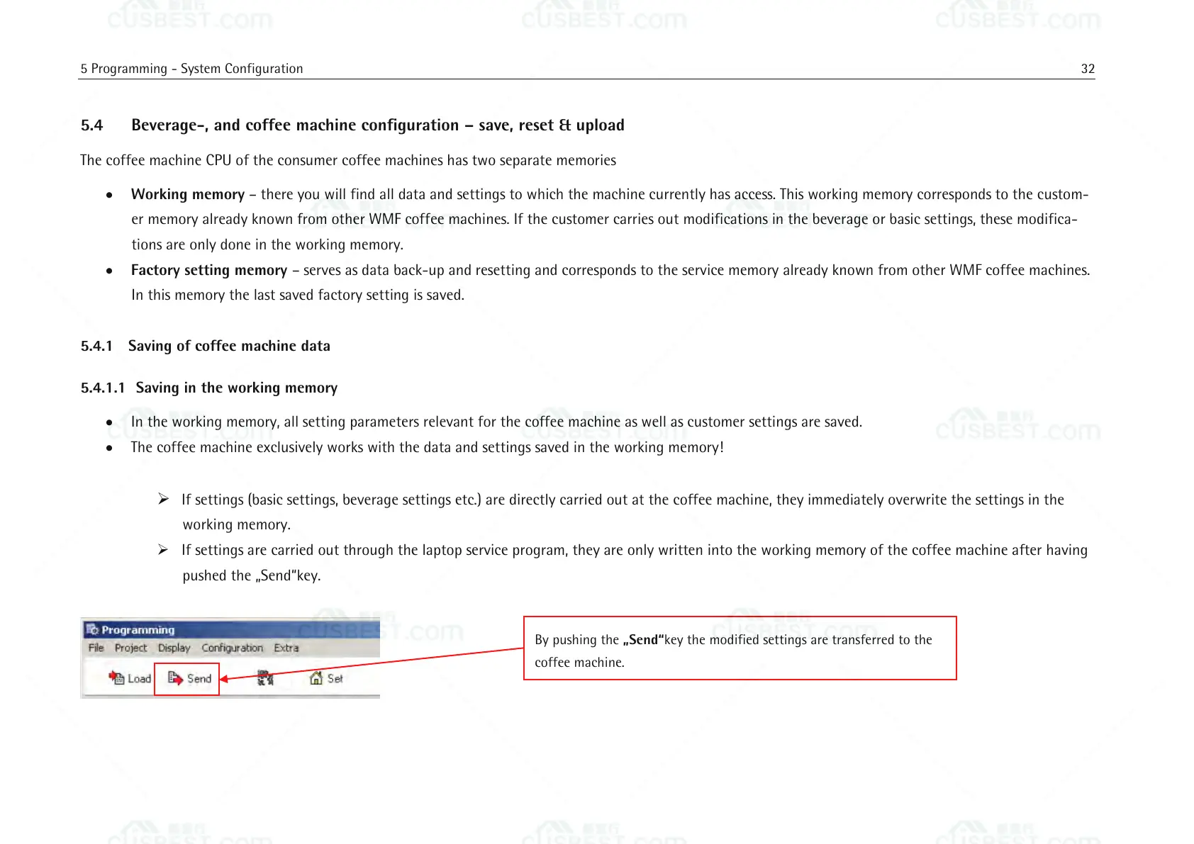 Factory setting memory – serves as data back-up and resetting and corresponds to the service memory already known from other WMF coffee machines.