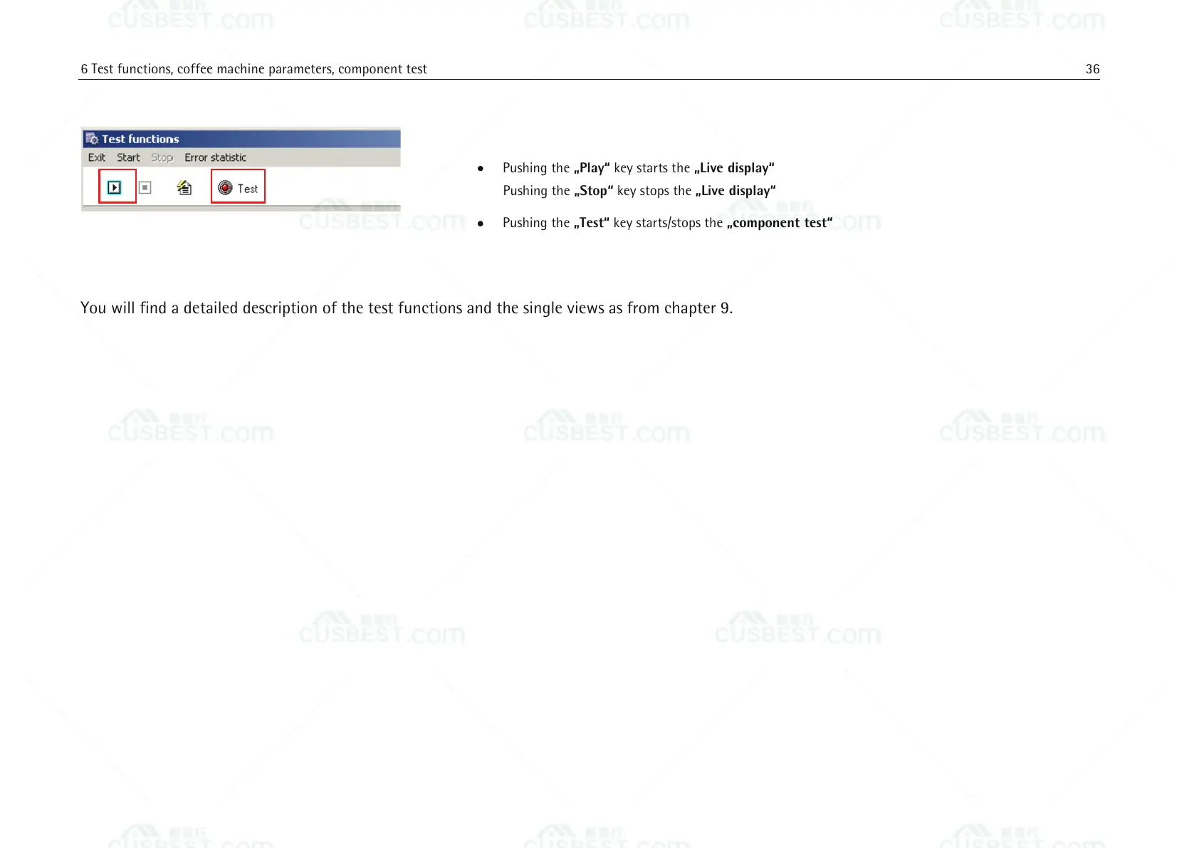You will find a detailed description of the test functions and the single views as from chapter 9.