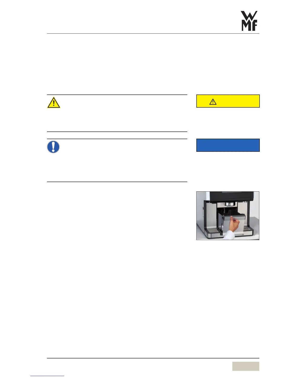 Dry the coffee grounds container and replace it