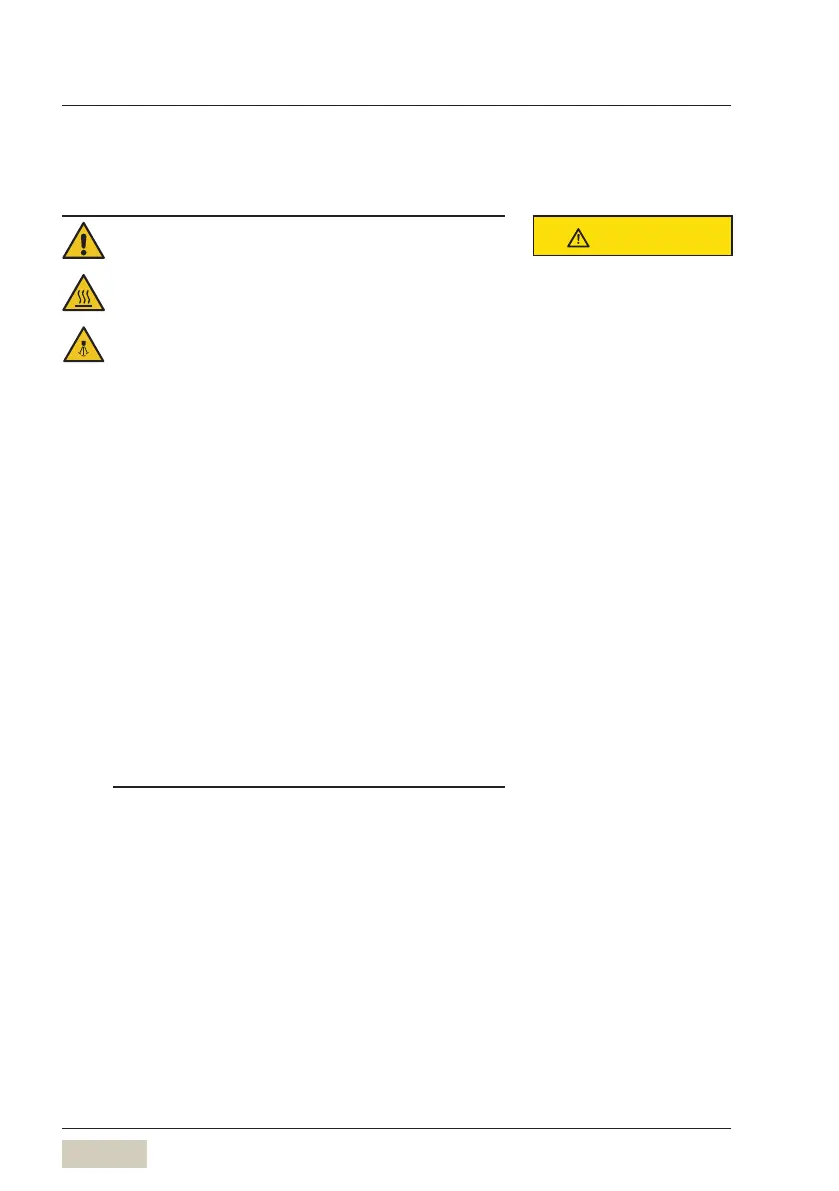 • Hot water and steam may escape from the