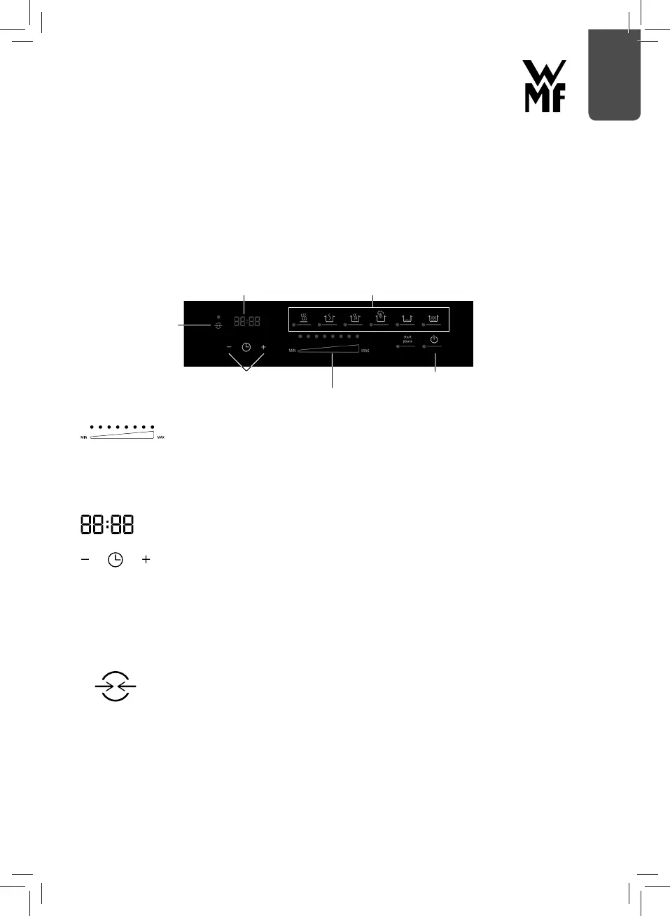 Induktiokeittotason toiminnot aktivoidaan kulloistakin symbolipainiketta koskettamalla. Käyttöpaneeli